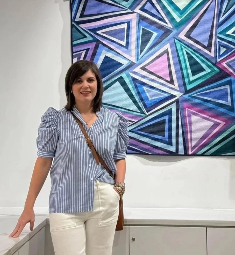 Jackie Tu is an abstract fiber artist based in Richmond, Virginia, known for her improvisational approach, bold geometric forms, and vibrant use of color. With a background in Integrated Marketing Communications (B.A. and M.A.), she brings a design-focused sensibility to her quilts, blending structure with spontaneity. Her practice is rooted in process, built intuitively on the design wall and refined through rhythm, repetition, and play. Drawing inspiration from everyday materials and the tactile experience of making, Jackie creates compositions that are both modern and expressive. Through her quilts, she invites viewers to experience abstraction not only as visual form but as a dialogue between control and chance, order and spontaneity.